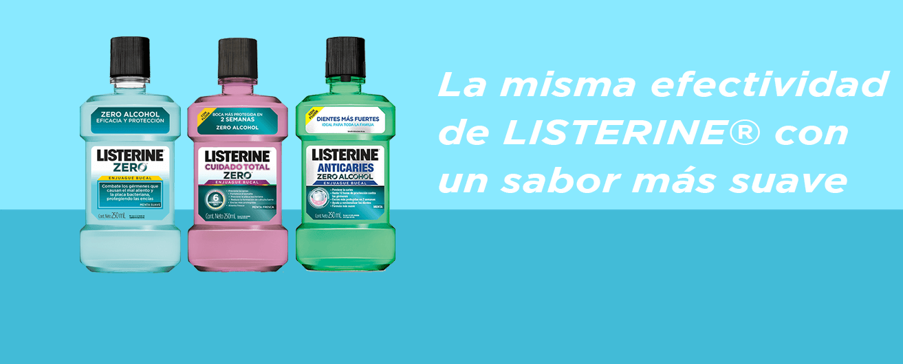 Recordá que el uso de enjuague bucal LISTERINE® ZEROTM es recomendado para niños a partir de los 6 años, mientras que las versiones de LISTERINE® que contienen alcohol para niños a partir de los 12 años